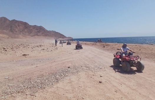 If you dream of seeing one of the most beautiful coral reefs in the world and walking through a picturesque canyon, this tour is for you! Excursion time: 7:30 AM - 6:00 PM (delays are possible, sometimes returning to the hotel closer to 8:00 PM) Salama Canyon – a walk along picturesque cliffs. This canyon is often called "colored," but this is not it. The canyon walk takes approximately 30 minutes. You will be transported from the main minibus to the canyon by jeep. Camel ride, Shopping visit, Lunch, Snorkeling on the reef (we'll snorkel and enjoy the underwater world. Vest rental is required), Optional ATV safari (additional charge)