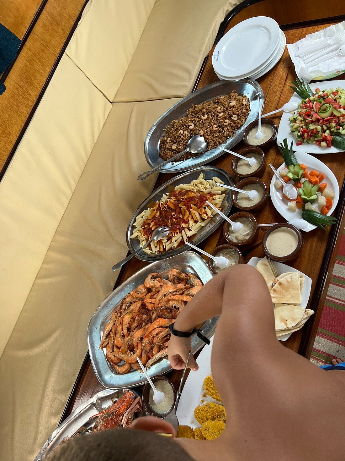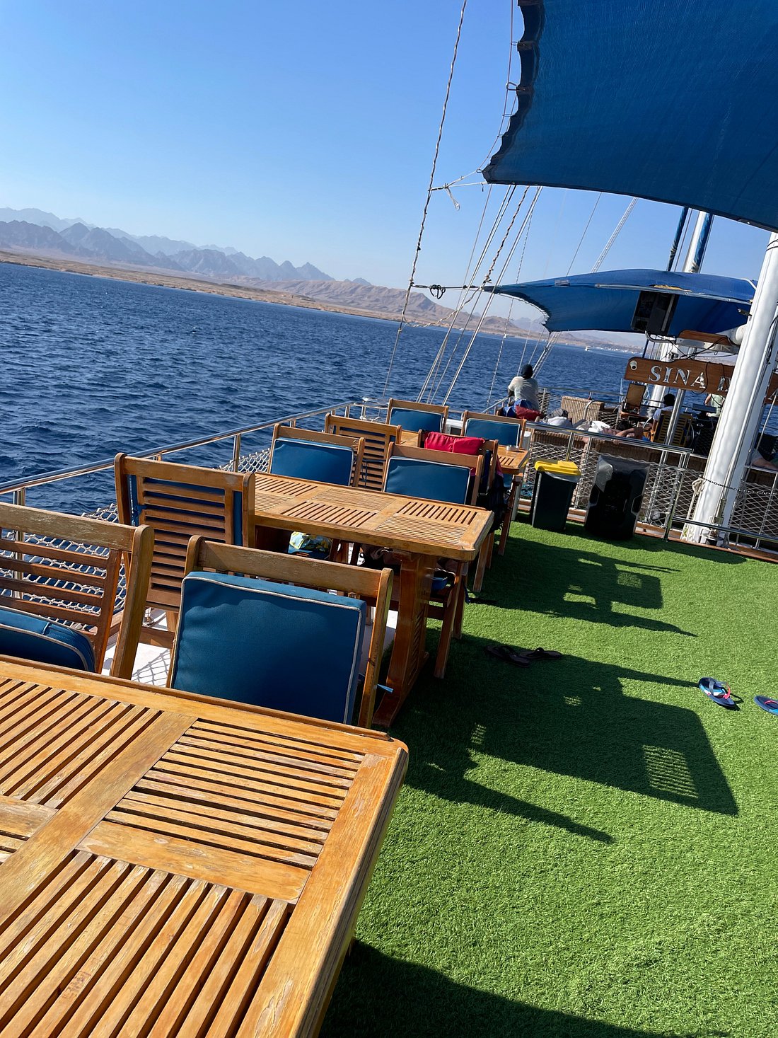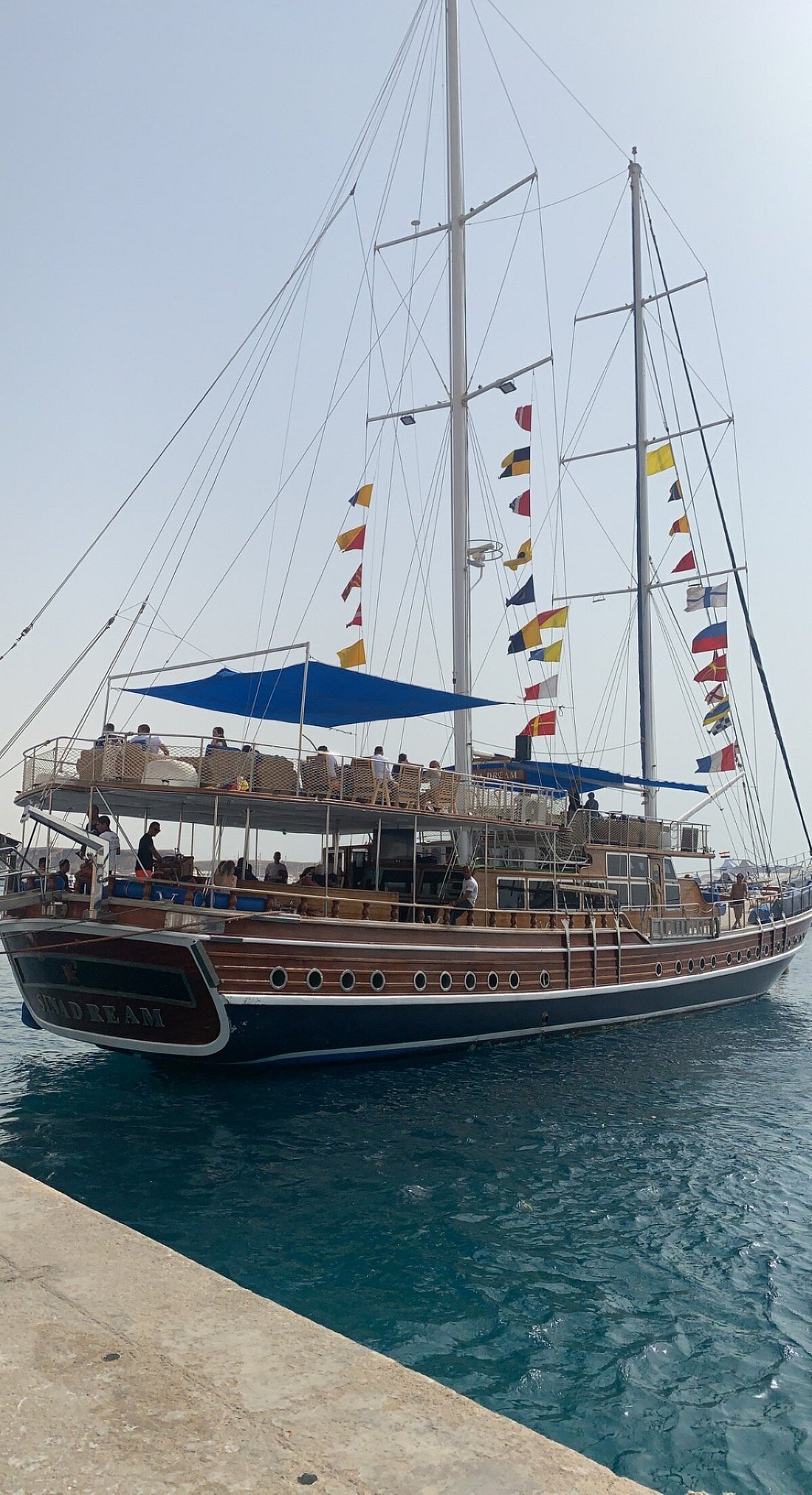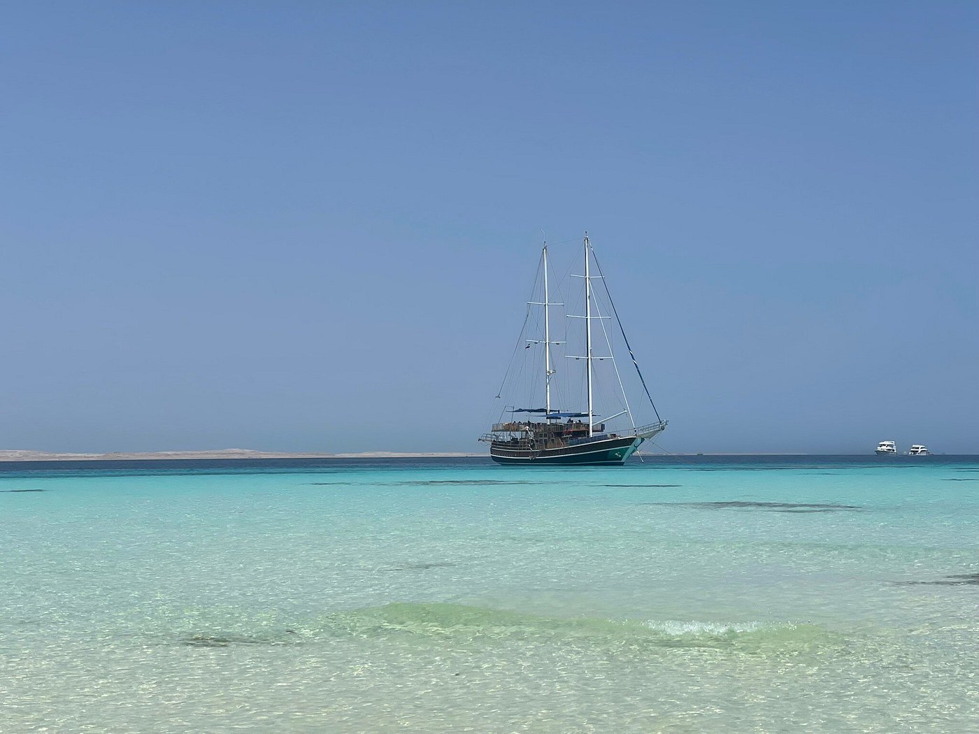Сбор в отеле Шарм-эль-Шейха в 08:00 и посадка на великолепную двухмачтовую шхуну «Sinai Dream», где классическая элегантность сочетается с современной роскошью на просторной верхней палубе с затенёнными зонами; наслаждайтесь обслуживанием официантов с безлимитными безалкогольными напитками, чаем и кофе по пути к острову Тиран, погрузитесь в кристально чистые воды Голубой лагуны, кишащей кораллами и морскими обитателями, поплавайте с маской в нескольких живописных местах, включая знаменитый затонувший в 1985 г. корабль Lara у Тирана, отведайте обед «шведский стол» – суп из креветок, жареное мясо и свежие фрукты на десерт, а к 17:00 вернитесь на берег и отправьтесь на комфортабельном автобусе обратно в отель.